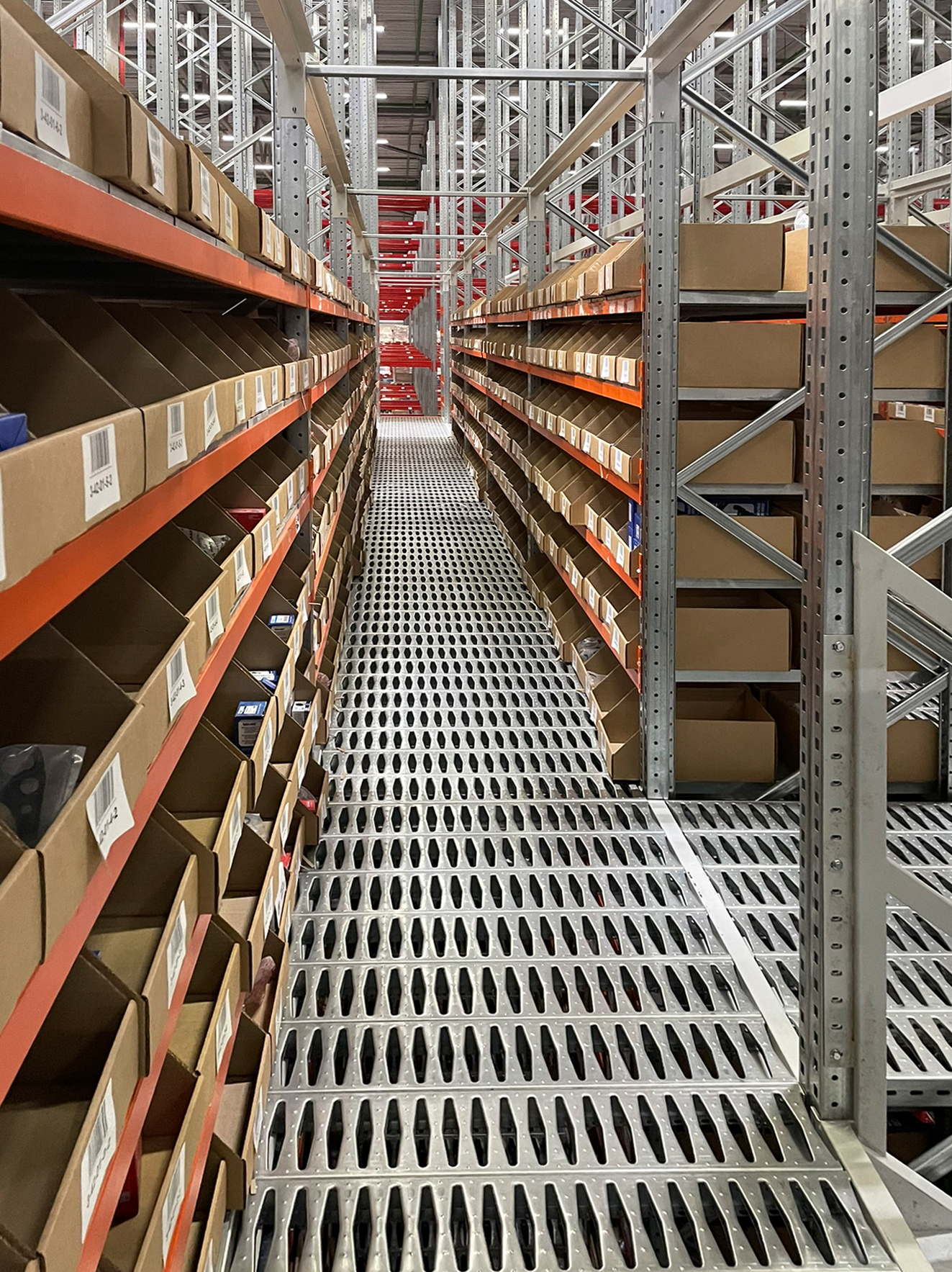 Универсальная стеллажная система включает в себя колонную, полочную и паллетные части. Многоуровневый мезонин оснащен полками из оцинкованной стали, проливными полами и блоками безопасной загрузки (по-другому называемые, перекидными либо вертикальными паллетными воротами). Также специалистами было предусмотрено место под установку конвейерной транспортной системы. Помимо мезонина, были установлены стеллажи в зону приемки товара и комплектации заказов. Все работы произведены строго в соответствии с графиком и условиями договора.